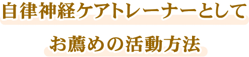 主に自律神経を整えるセルフケアがアドバイスできるようになるので、場所や人数に制限なく活動の場を広げていくことが出来るようになります。
